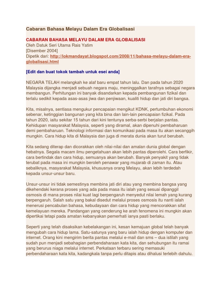 Cabaran Bahasa Melayu Dalam Era Globalisasi Pdf